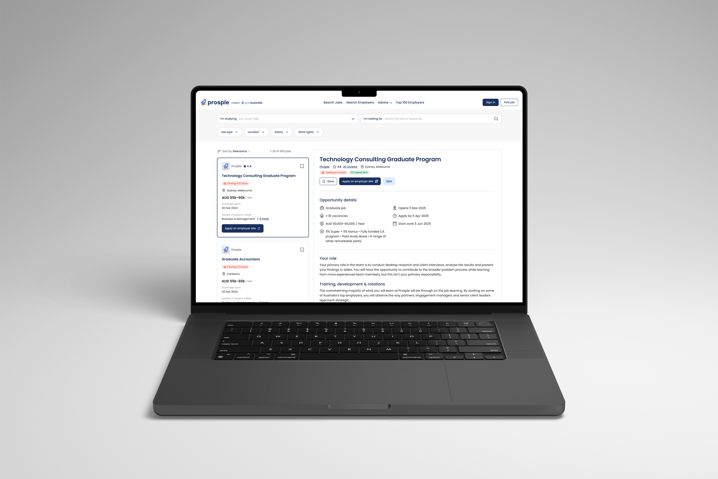 User testing and analytics revealed that students found the job detail pages overwhelming, inconsistent in layout, and not optimised for quick scanning or application. Mobile users especially struggled with navigation and visibility of key CTAs.